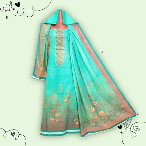 • প্রিমিয়াম গঙ্গা ডিজিটাল প্রিন্টেড লোন এমব্রয়ডারি থ্রী-পিস
